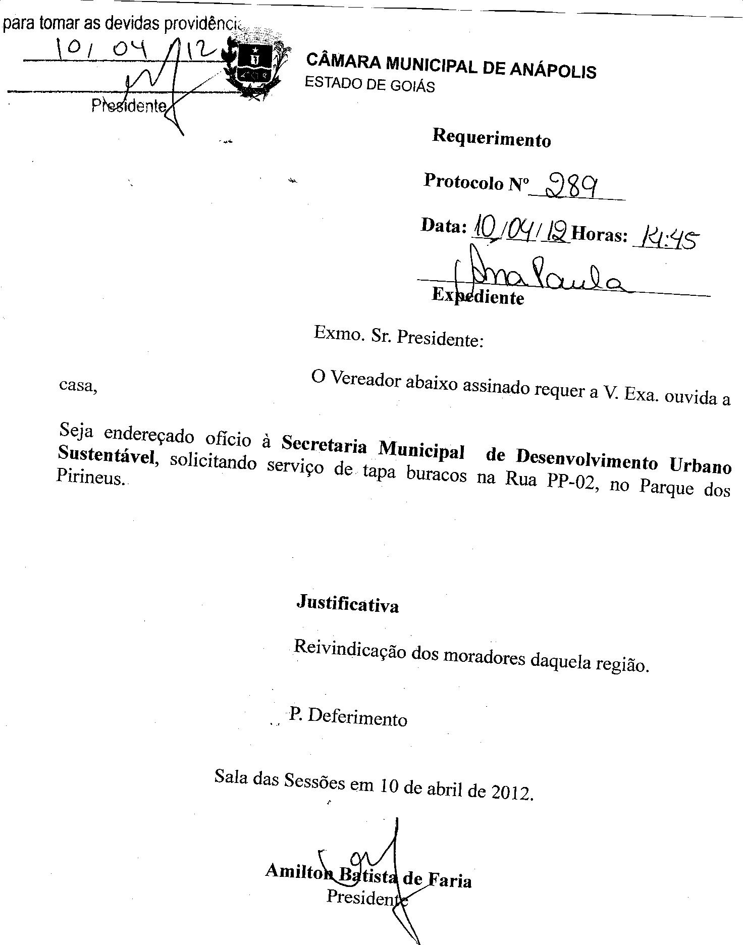 REQ 289/2012 - Requerimento