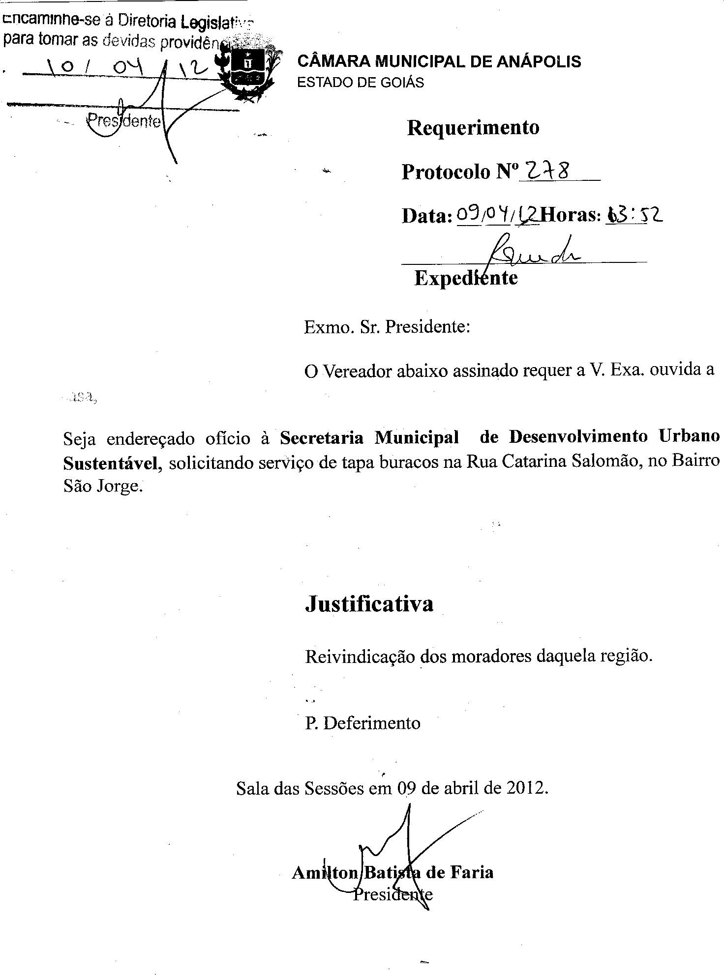 REQ 278/2012 - Requerimento