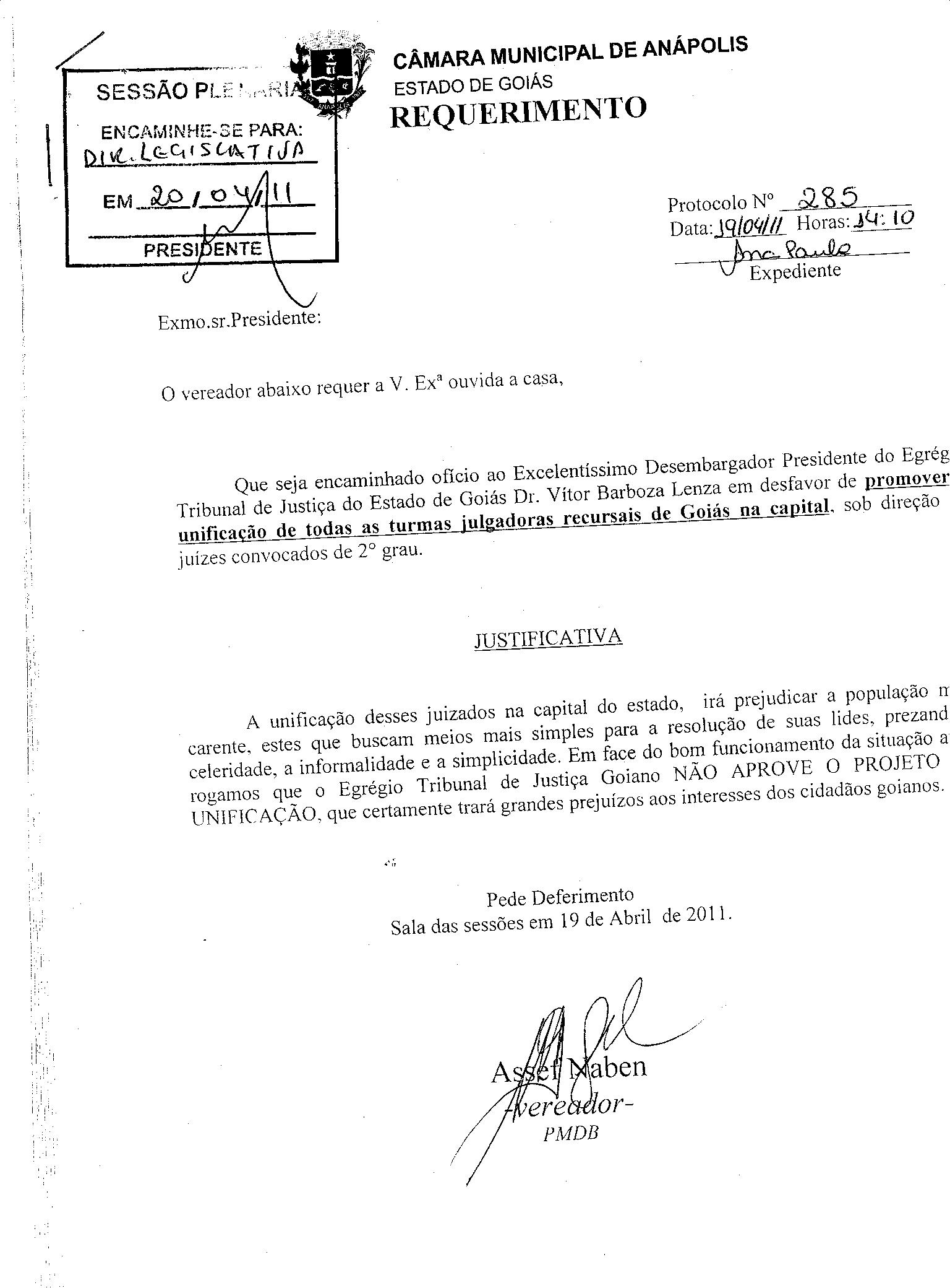 REQ 285/2011 - Requerimento