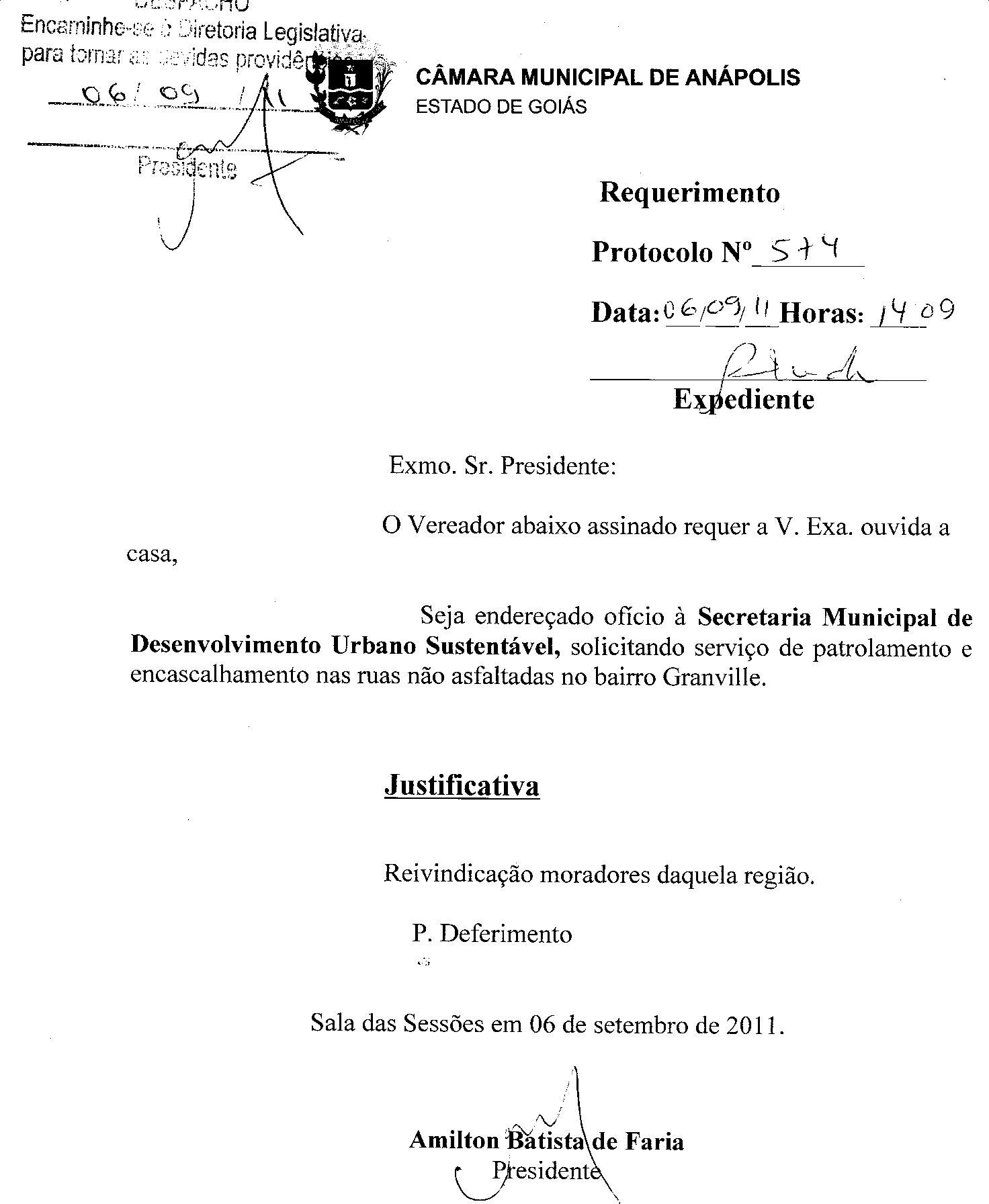 Ementa: O VEREADOR, ABAIXO ASSINADO REQUER A V.EX° OUVIDA A CASA, SEJA ENCAMINHADO OFÍCIO À SECRETARIA MUNICIPAL DE DESENVOLVIMENTO URBANO SUSTENTAVEL, SOLICITANDO SERVIÇO DE PATROLAMENTO E ENCASCALHAMENTO NAS RUAS NÃO ASFALTADAS NO BAIRRO GRANVILLE.
