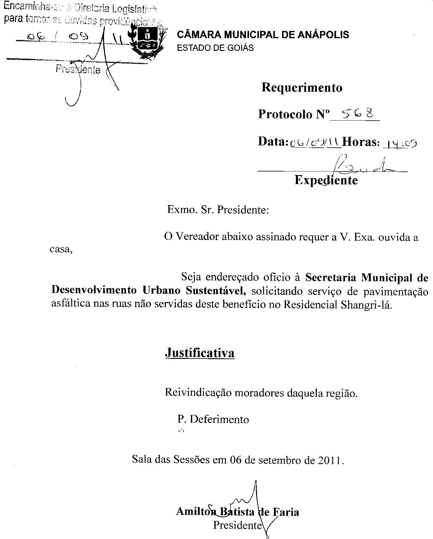 Ementa: O VEREADOR, ABAIXO ASSINADO REQUER A V.EX° OUVIDA A CASA, SEJA ENCAMINHADO OFÍCIO À SECRETARIA MUNICIPAL DE DESENVOLVIMENTO URBANO SUSTENTAVEL, SOLICITANDO SERVIÇO DE PAVIMENTAÇÃO ASFÁLTICA NAS RUAS NÃO SERVIDAS DESTE BENEFÍCIO NO RESIDENCIAL SHANGRI-LÁ.