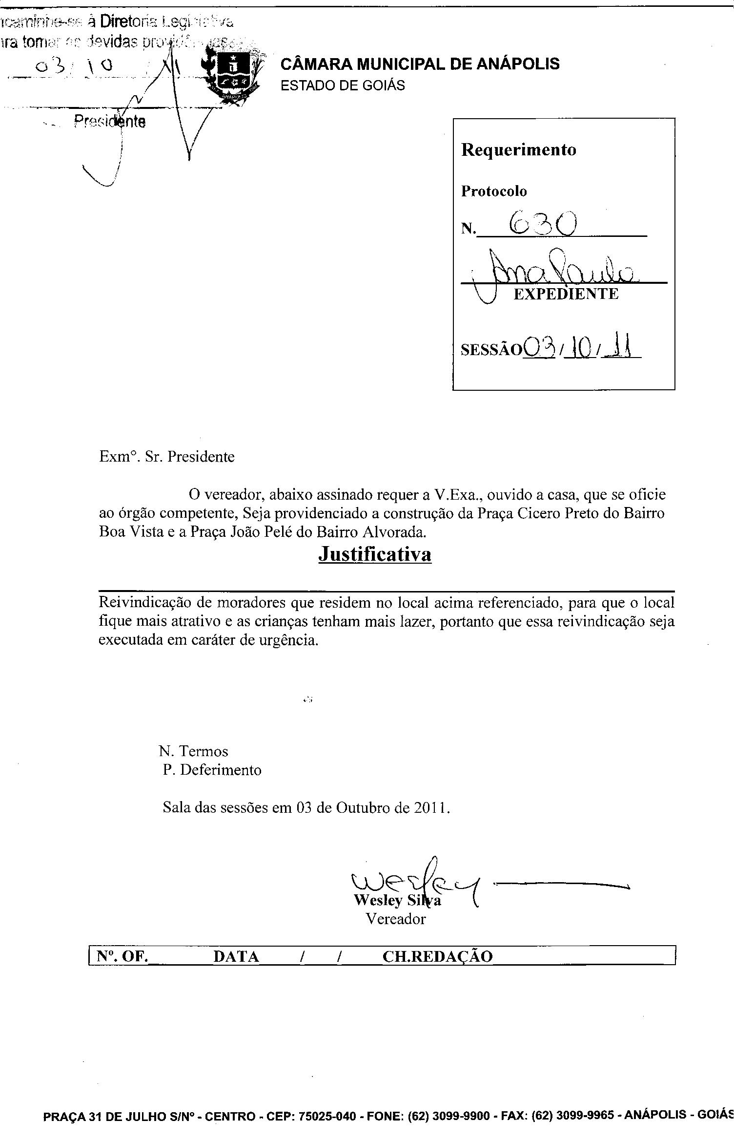 Ementa: O VEREADOR ABAIXO ASSINADO REQUER QUE VOSSA EXCELÊNCIA OUVIDA A CASA, QUE SE OFICIE AO ÓRGÃO COMPETENTE, SEJA PROVIDENCIADO A CONSTRUÇÃO DA PRAÇA CICERO PRETO DO BAIRRO BOA VISTA E A PRAÇA JOÃO PELÉ DO BAIRRO ALVORADA.