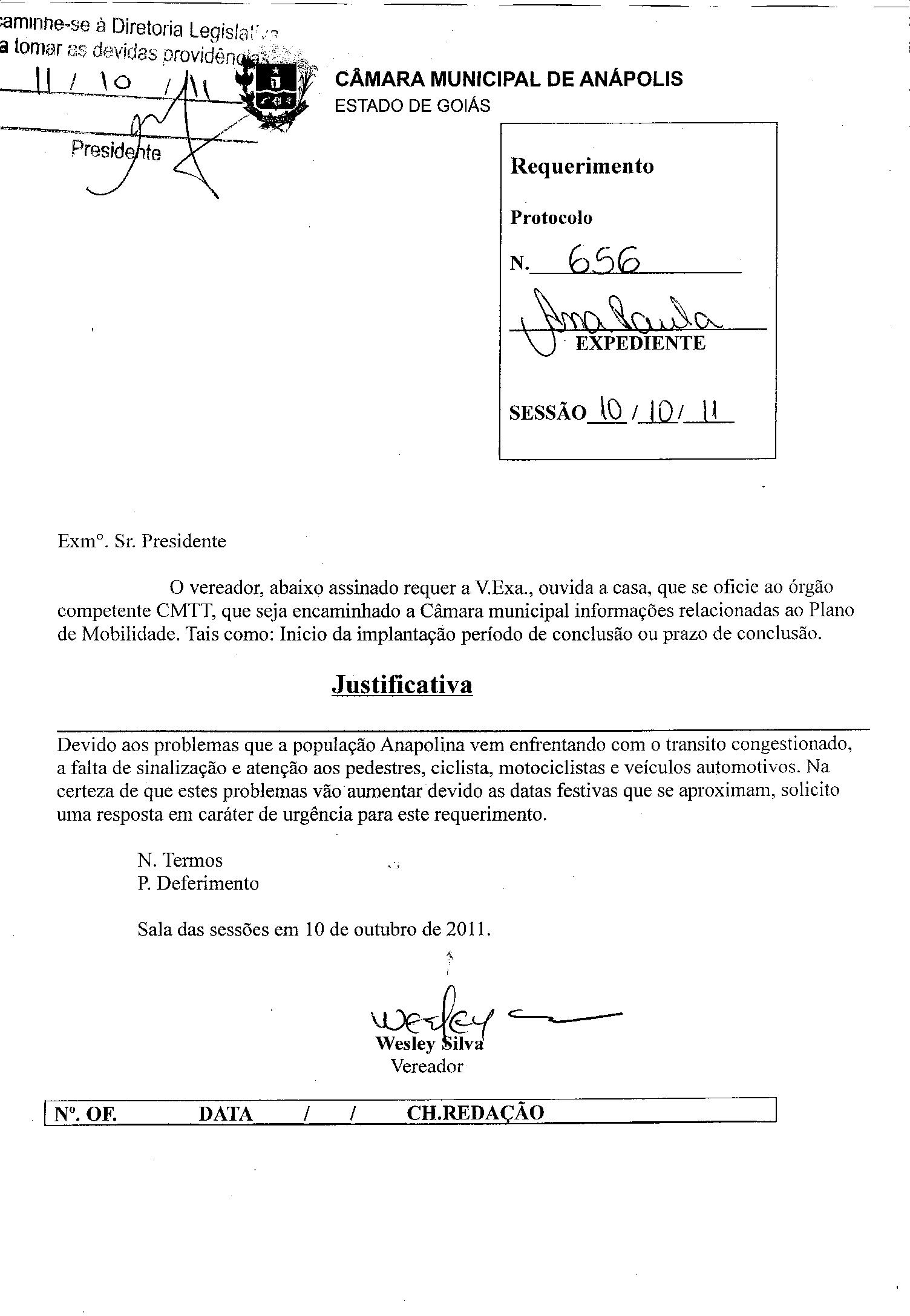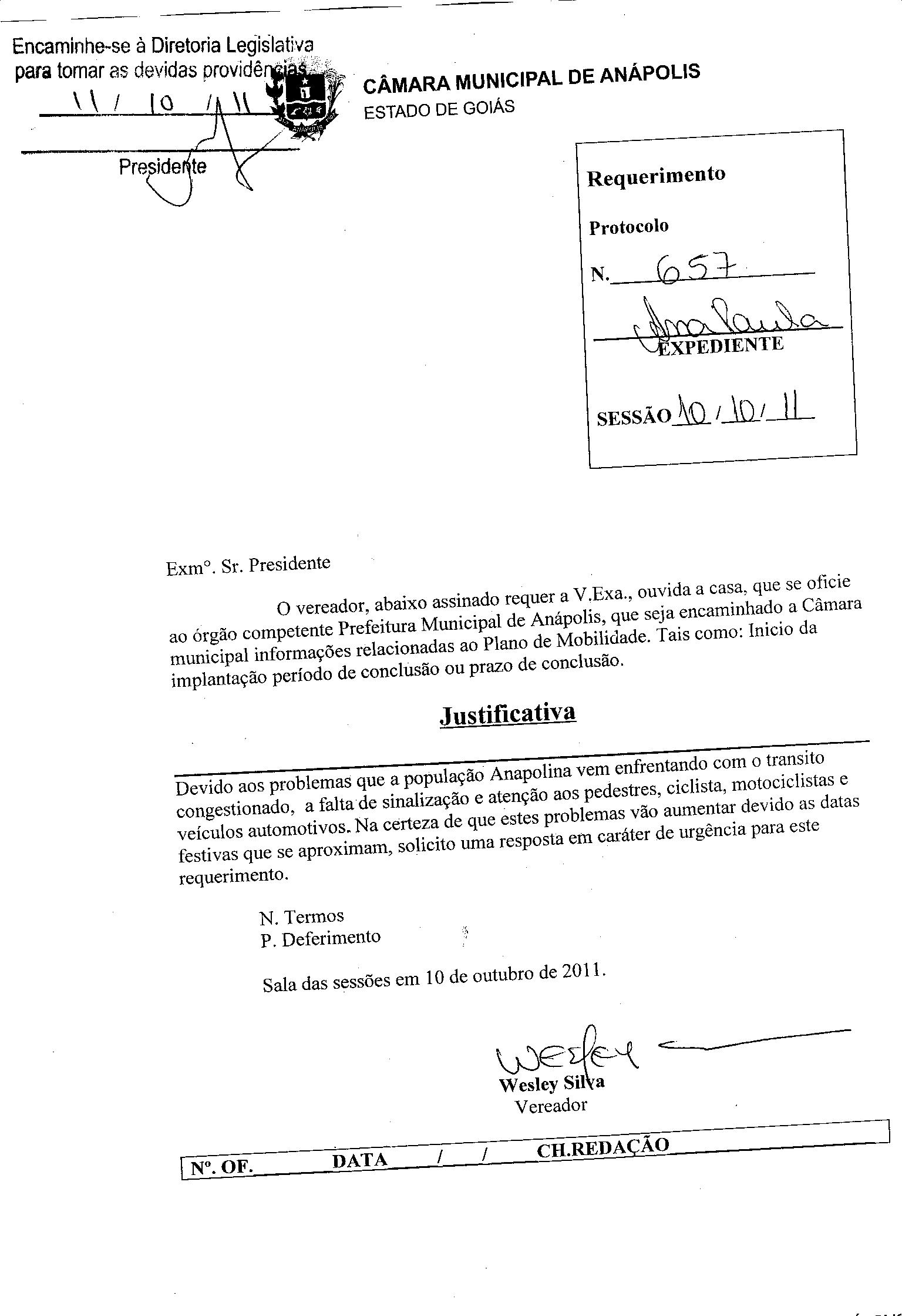 Ementa: O VEREADOR, ABAIXO ASSINADO REQUER A V.EXA., OUVIDA A CASA, QUE SE OFÍCIE AO ÓRGÃO COMPETENTE PREFEITURA MUNICIPAL DE ANÁPOLIS, QUE SEJA ENCAMINHADO A CÂMARA MUNICIPAL INFORMAÇÕES RELACIONADAS AO PANO DE MOBILIDADE. TAIS COMO: INÍCIO DA IMPLANTAÇÃO PERÍODO DE CONCLUSÃO OU PRAZO DE CONCLUSÃO.