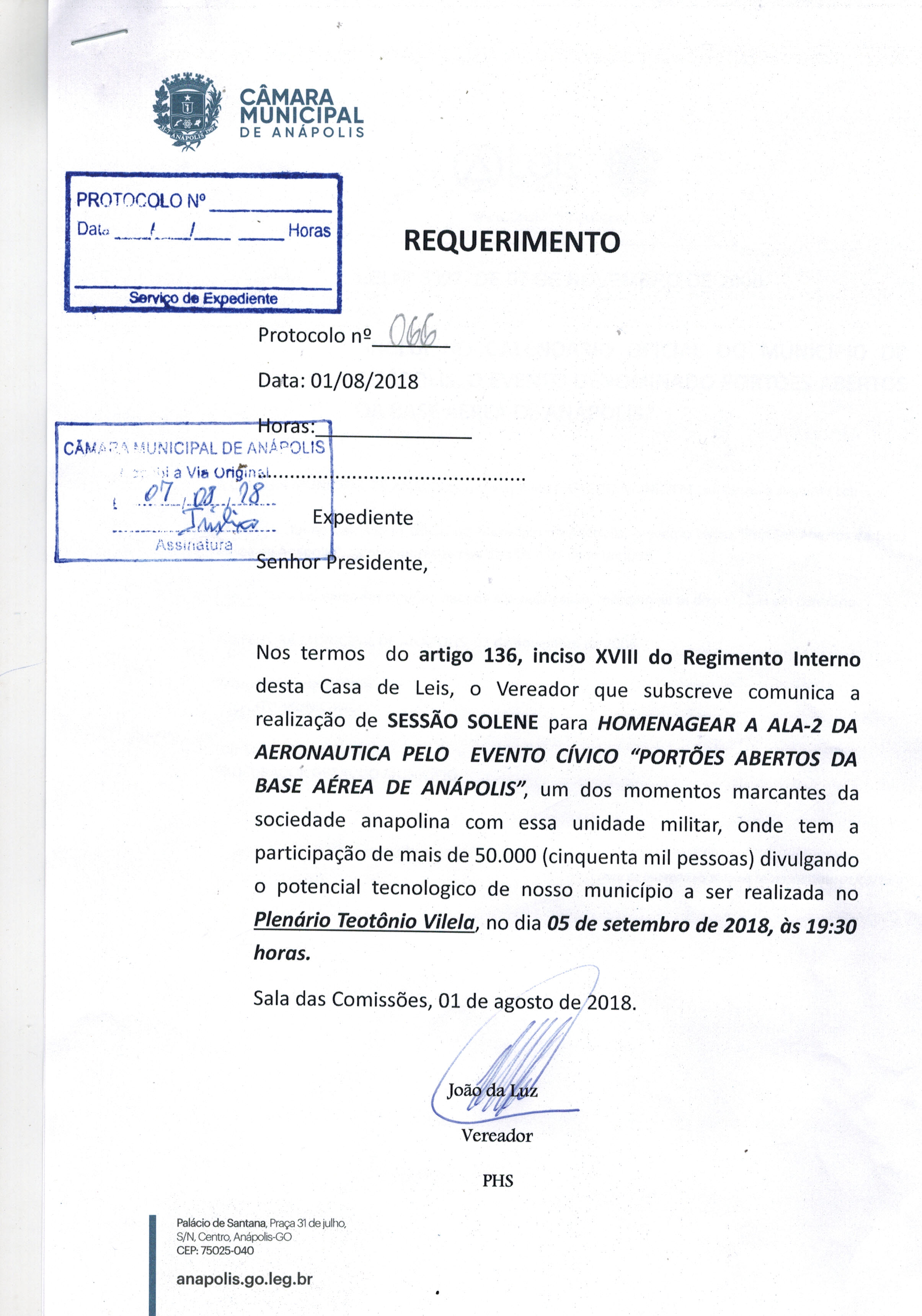 DISPÕE SOBRE A TRANSFERÊNCIA DA SESSÃO SOLENE DO PLENÁRIO TEOTÔNIO VILELA DESTA CASA DE LEIS,PARA SALÃO NOBRE DO SESI, PARA A ENTREGA DA COMENDA HOMERO FERREIRA DA CUNHA, EM COMEMORAÇÃO ALUSIVA DO DIA DA JAIARA, A SER REALIZADO NO DIA 21 DE AGOSTO DE 2018, ÀS 19:30 HR E DÁ OUTRAS PROVIDÊNCIAS. - - |